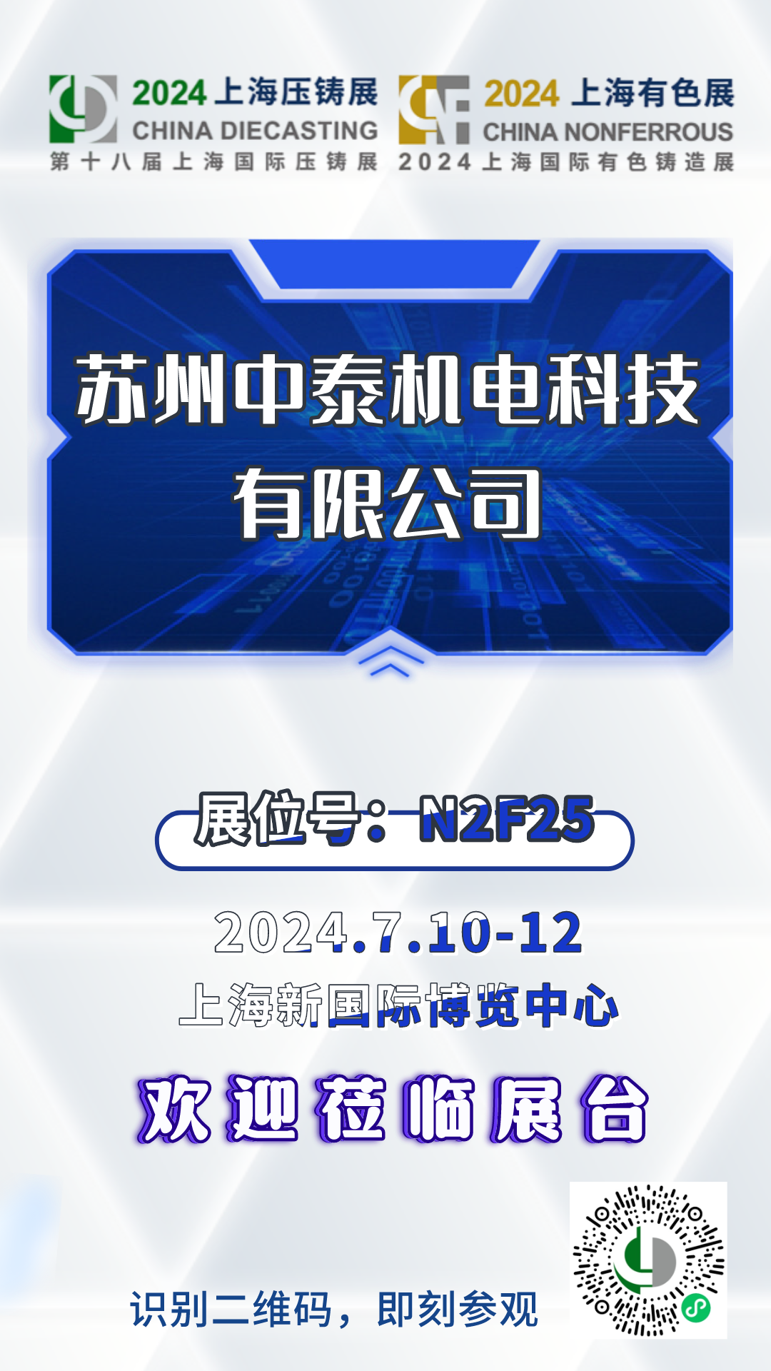 2024年7月10日 – 12日,第十八屆上海國際壓鑄暨有色鑄造展將在上海新國際博覽中心盛大開展,歡迎各位蒞臨蘇州中泰機(jī)電科技有限公司展臺參觀指導(dǎo)!