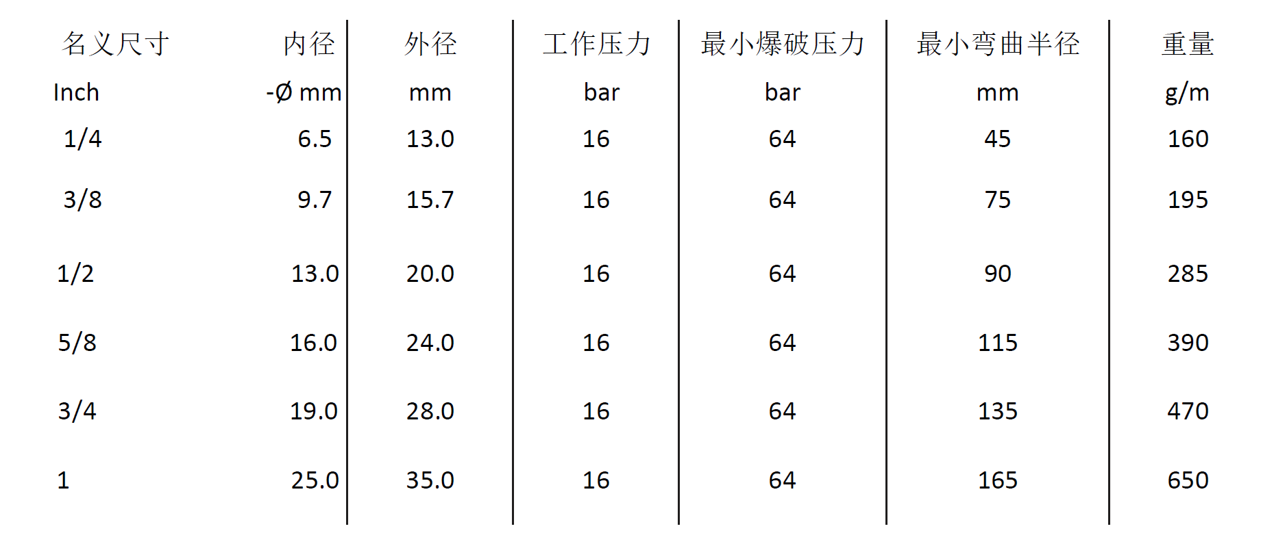 壓力基于室溫。高壓和/或高溫會(huì)降低軟管的耐久性。