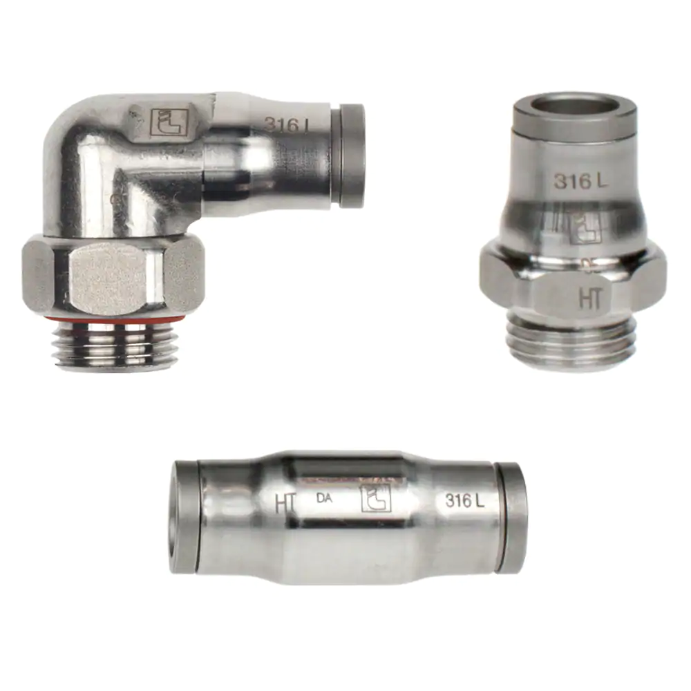 派克樂可利開發(fā)了兩種系列的不銹鋼快插式接頭(LF3800和LF3900全不銹鋼316L材質(zhì)系列),可用于傳輸嚴(yán)苛環(huán)境中的腐蝕性流體。這些產(chǎn)品系列提供了兩種水平的耐蝕性能,具有符合衛(wèi)生要求的外形設(shè)計。