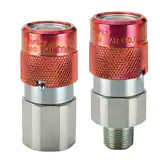 H 系列快換陰接頭,承壓(液壓)可達(dá)10,000 psi,能夠符合液壓工具制造協(xié)會(huì) (HTMA) 標(biāo)準(zhǔn)要求,并且能與FH系列陽(yáng)接頭配合連接。派克 FH 系列是高壓無(wú)溢流型快換,因此不能與低壓快換接頭配合連接。紅色表面能夠使得這些快換接頭容易作為高壓快換 (10,000 psi) 作為識(shí)別。陰接頭有套筒鎖功能,減少意外斷開的情況。快換陰接頭與陽(yáng)接頭目前可供尺寸僅 3/8"
