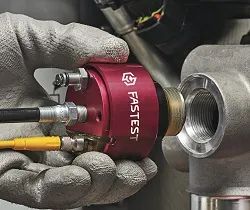 先用夾具連接尾部的兩個(gè)固定孔,把接頭固定在測試件上;施加先導(dǎo)氣壓膨脹密封圈進(jìn)行密封;從測試孔通入測試介質(zhì);測試完畢后氣壓減小,密封圈回縮,進(jìn)行下一測試件的密封。整個(gè)操作過程只需幾秒,自動化流程,無需手動操作。
