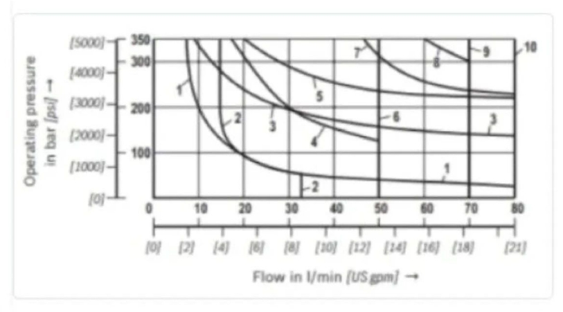 查看組件的數(shù)據(jù)表以選擇具有所需流量的閥門。確保您知道執(zhí)行器在最惡劣的條件下需要多少負(fù)載,以及系統(tǒng)其他部分會產(chǎn)生多少壓力損失。然后選擇一個壓降足夠低以滿足您的供應(yīng)壓力的閥門。每個閥芯的閥門流量額定值會有所不同,并且可能低于該特定閥門類型引用的標(biāo)題數(shù)據(jù)。第一張圖顯示了同一閥門不同版本的許多不同的 PD 與流量曲線。