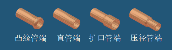 制冷銅管,鋁材,軟質(zhì)不銹鋼, 外形包括凸緣管端,直管端,擴口管端,壓 徑管端 |