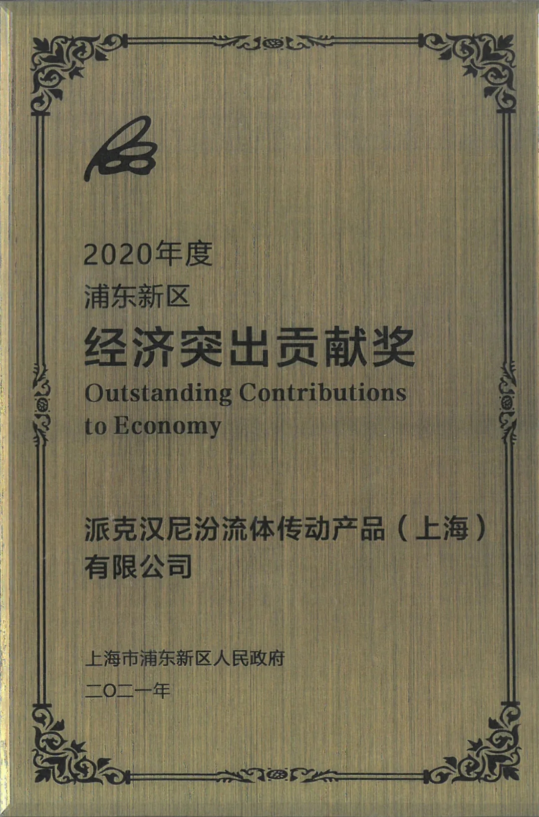 派克漢尼汾榮獲2020年度浦東新區(qū)經(jīng)濟突出貢獻獎