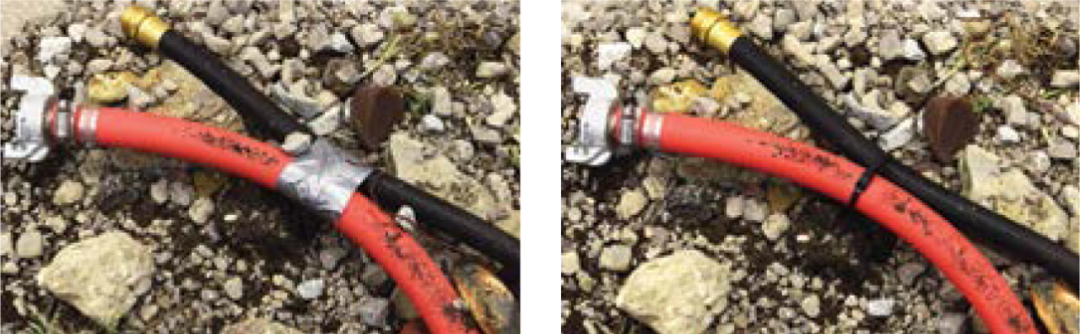 這是一款雙軟管系統(tǒng),它可以將空氣和水傳送到重載氣動工具,從而抑制硅塵。管線之間的粘合牢固而持久,安裝簡易、操作安全。軟管總成兩端可拆裝,便于連接空氣壓縮機、供水系統(tǒng)和手提鉆。更重要的是,Twinhammer軟管使手提鉆用戶及其雇主能便捷高效地符合新規(guī)要求。