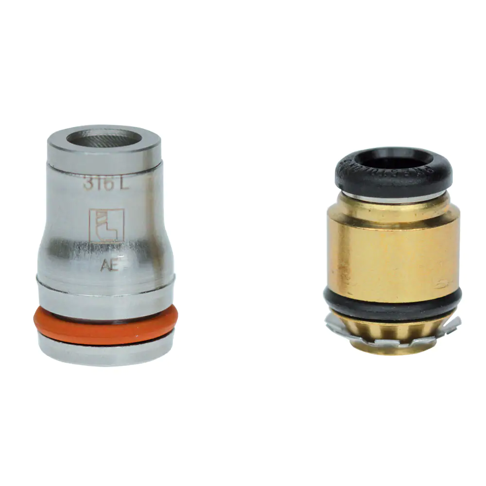 為了兼容多種流體和適應(yīng)惡劣使用狀況(+150?C),派克樂可利開發(fā)了兩類埋入式接頭。使用我們的金屬埋入式接頭可以優(yōu)化安裝配置,對于TL而言,接頭還可以拆卸。